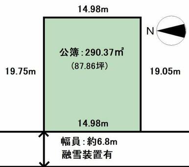| 土地面積 | 公簿 290.37㎡ | 坪数 | 87.83坪 | 坪単価 | 11.16万円 |