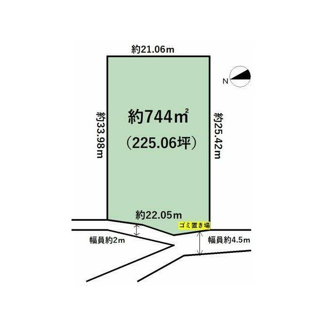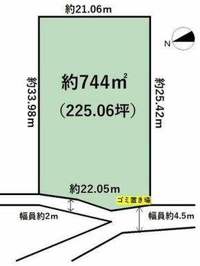 | 土地面積 | 公簿 744.00㎡ | 坪数 | 225.05坪 | 坪単価 | 0.89万円 |
