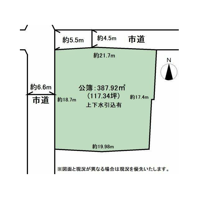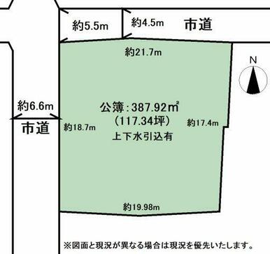 角地:2方道路 北5.5m 公道 西6.6m 公道 |