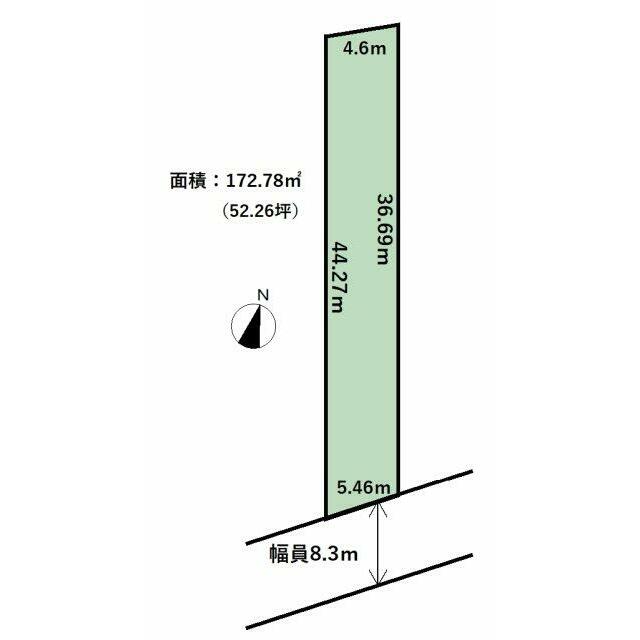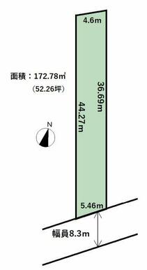 | 土地面積 | 公簿 172.78㎡ | 坪数 | 52.26坪 | 坪単価 | 0.77万円 |