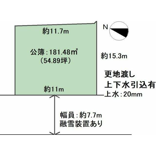 | 土地面積 | 公簿 181.48㎡ | 坪数 | 54.89坪 | 坪単価 | 18.22万円 |